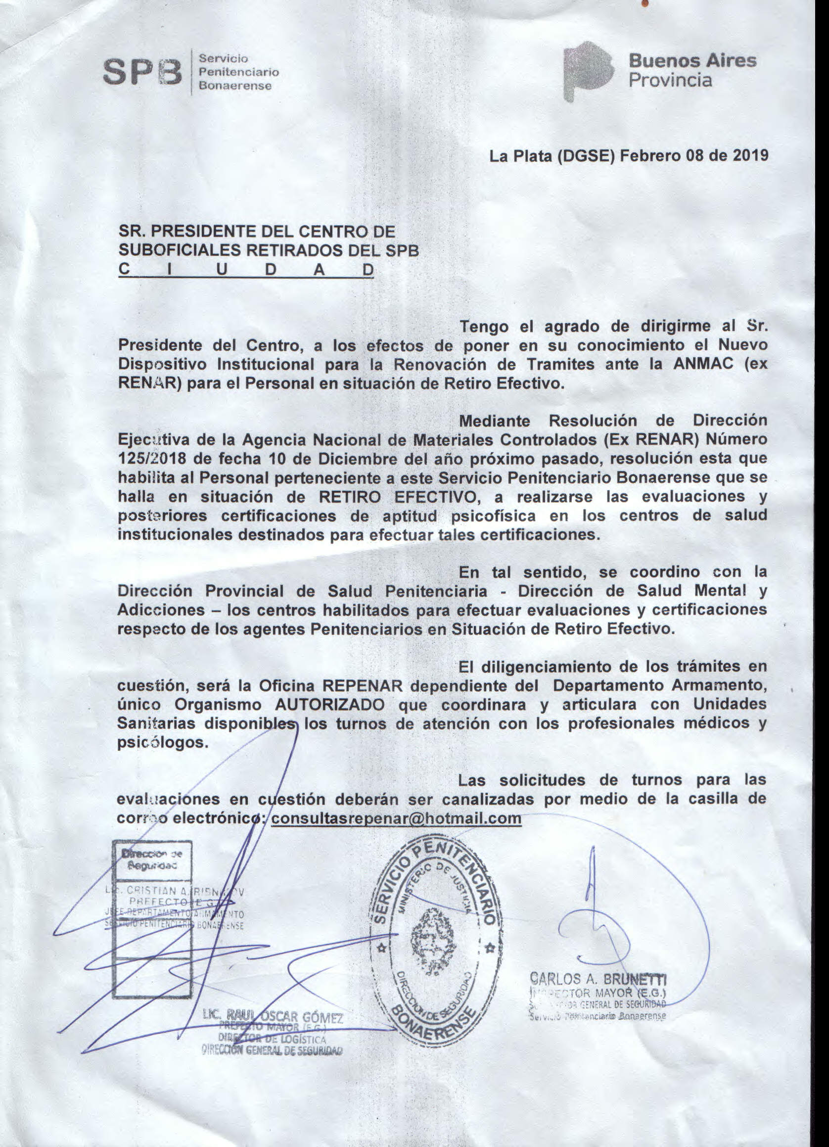Comunicamos al personal retirado (Suboficiales Mayores y jerarquías menores), que se reabrió la convocatoria para realizar guardias en edificios públicos. Aquellos que estén interesados deben dirigirse a la Jefatura del Servicio - Dcion.Grl.de Seguridad a realizar la entrevista correspondiente.